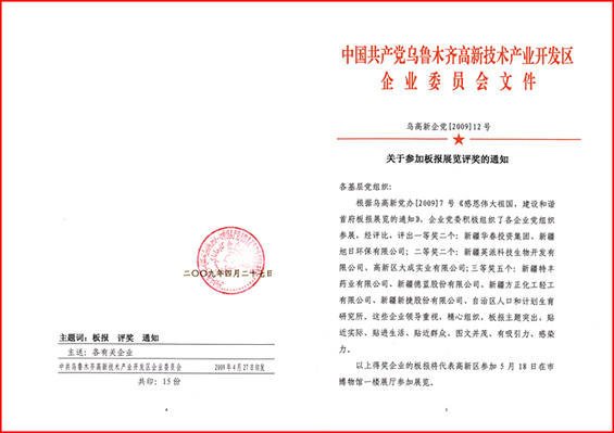 為迎接中華人民共和國誕生60周年和開展好第27個民族團結教育月宣傳活動,高新區于4月25~26日舉辦了由轄區內各文明委成員單位和各企業積極參與的“感恩偉大祖國 建設和諧首府”板報展,華春投資集團以著重反映華春企業全貌和著重反映華春員工風采的2塊宣傳板報,以其板報編輯的思想性和構思設計的新穎性,得到了高新區評委會的首肯,在參展的眾多板報中被評為第一名,將于5月中旬參加由烏魯木齊市委宣傳部組織的優秀板報展覽。