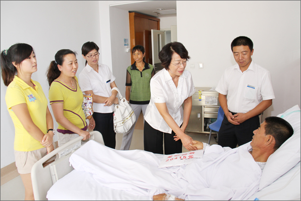 2012年7月27日下午,新疆華春投資集團工會主席高青與集團下屬的新疆華景物業服務有限公司、集團人力資源部、行政辦及編輯部等部門的管理人員一行6人,帶著華春全員的真摯情意及慰問品,前往新疆醫學院看望慰問華景物業公司員工張瑞患病住院的父親。集團工會主席首先向張瑞的父親轉達了李成功總裁對他的關心和誠摯問候,送上了華春全員給他捐助的2萬多元的愛心捐款。