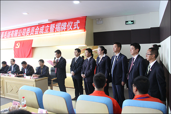 五家渠市黨委組織部常務(wù)副部長,人事局局長張寶林同志宣讀了華春毛紡黨委成立及黨委成員任命的文件。五家渠市黨委常委、副市長李金平同志和自治區(qū)政協(xié)常委、華春投資集團(tuán)董事局主席兼總裁李成功先生為華春毛紡黨委成立揭牌,并先后講了話。