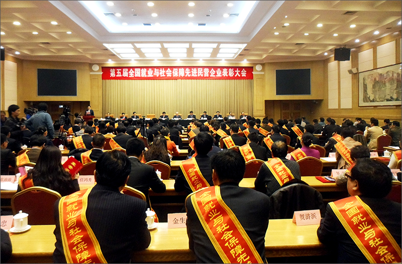 在全國工商聯、全國總工會、人社部三方聯合的表彰大會上,全國總工會副主席、書記處第一書記陳豪宣讀了表彰決定;為先進民營企業頒發了光榮冊、榮譽證書和獎牌;大會號召,全國廣大民營企業要以受表彰的先進民營企業為榜樣,積極承擔社會保障義務,切實維護職工合法權益。