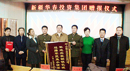 在數(shù)九寒天的1月11日,新疆華春投資集團(tuán)有限公司為了能讓69078部隊(duì)的廣大官兵及時了解國內(nèi)外各個方面重大經(jīng)濟(jì)信息、學(xué)習(xí)掌握新疆市場經(jīng)濟(jì)動態(tài),以便能在今后市場經(jīng)濟(jì)的大潮中游刃有余,新疆華春投資集團(tuán)出資現(xiàn)金43200元,訂購150份2008年全年度的《新疆經(jīng)濟(jì)報(bào)》,贈送給69078部隊(duì)的同志們,從而為新疆的軍民團(tuán)結(jié)、為駐疆部隊(duì)軍地人才的培養(yǎng),奉獻(xiàn)出新疆華春投資集團(tuán)的一片心力。