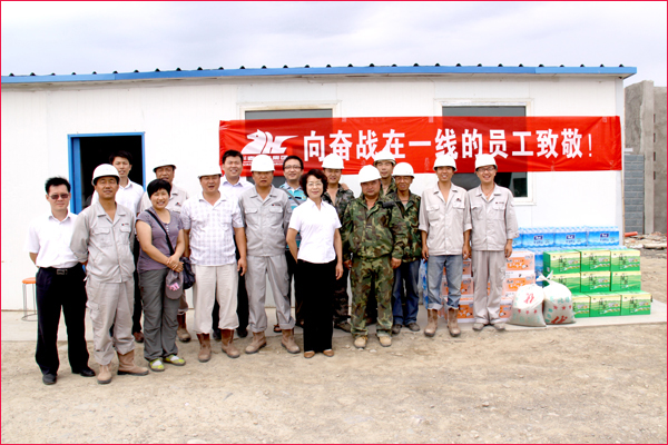 6月30日,新疆華春投資集團工會主席高青和行政辦副主任鄭培君、華春集團子公司新疆恒潤實業有限公司辦公室主任及集團編輯部全員一行,將一箱箱的統一綠茶和茉莉蜜茶、一件件的純凈水及綠豆、冰糖、白糖等降溫防暑飲料與物品,送給奮戰在五家渠華春毛紡工業園項目建設工地的一線員工,同時也送去了李成功總裁和華春全員的關愛之心。一線員工們接到公司送來的慰問品,深深感受到公司的關懷,“感謝李總裁對我們的關心!謝謝公司對我們的慰問看望!”