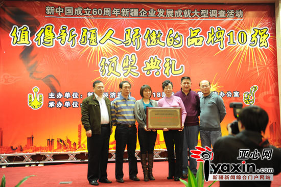 《亞心網(wǎng)》2009.11.09報道:“值得新疆人驕傲的品牌10強”評選活動頒獎