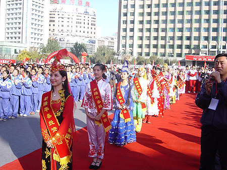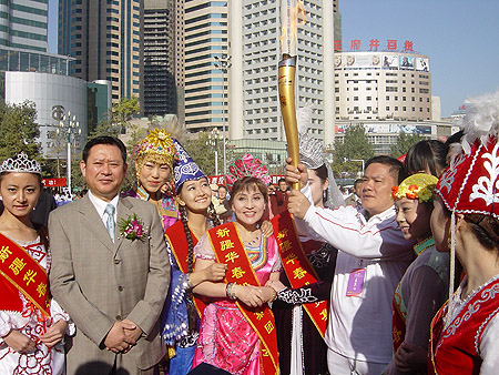 2007年10月13日上午,第八屆全國少數(shù)民族傳統(tǒng)體育運動會的火炬?zhèn)鬟f到了第三站——新疆維吾爾自治區(qū)。上午11時,隆重的火炬?zhèn)鬟f儀式在烏魯木齊人民廣場舉行。