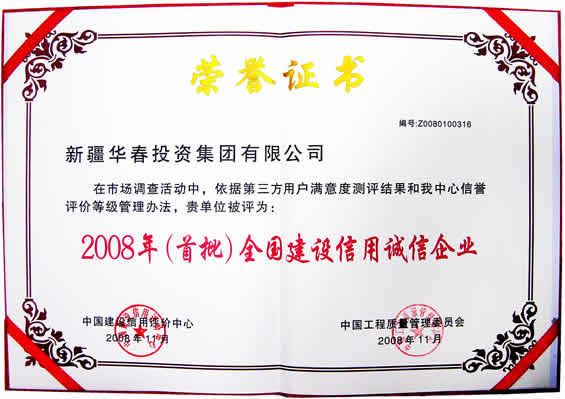 您現在的位置:新疆華春投資集團有限公司>> 華春榮譽>> 企業榮譽>>正文內容